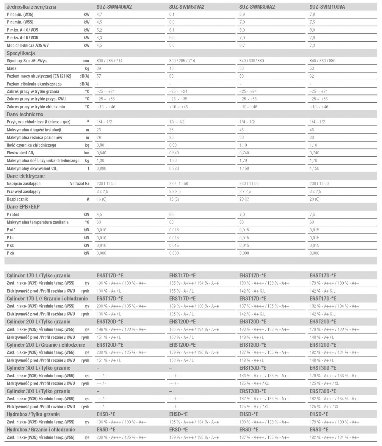 - Duża obudowa: SUZ-SWM80VA2, SUZ-SWM100VA