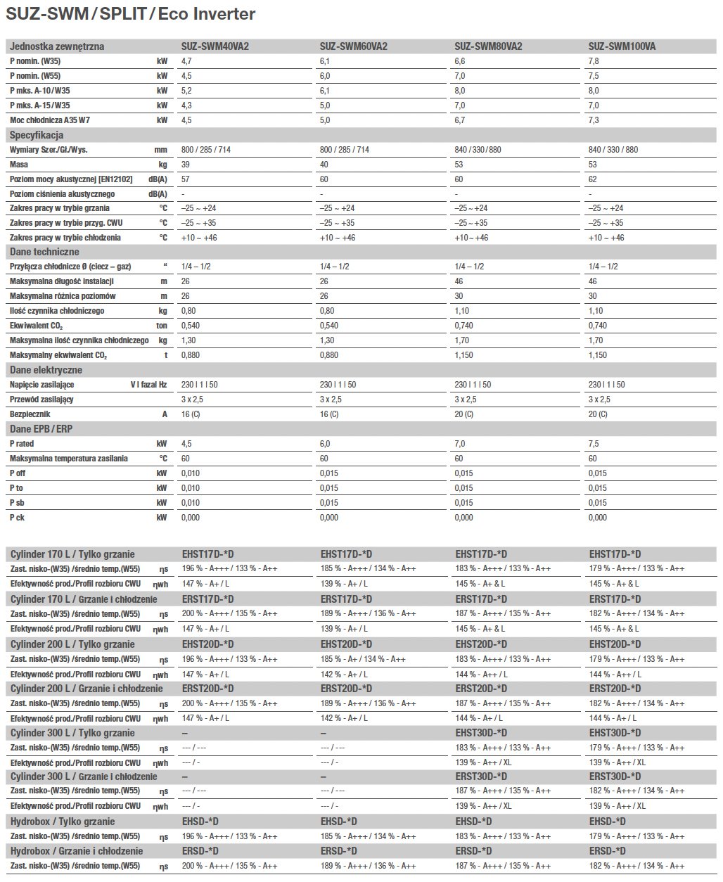 Pompa ciepła MITSUBISHI ELECTRIC ECODAN Eco Inverter SUZ-SWM-VA + Cylinder EHST-D / ERST-D