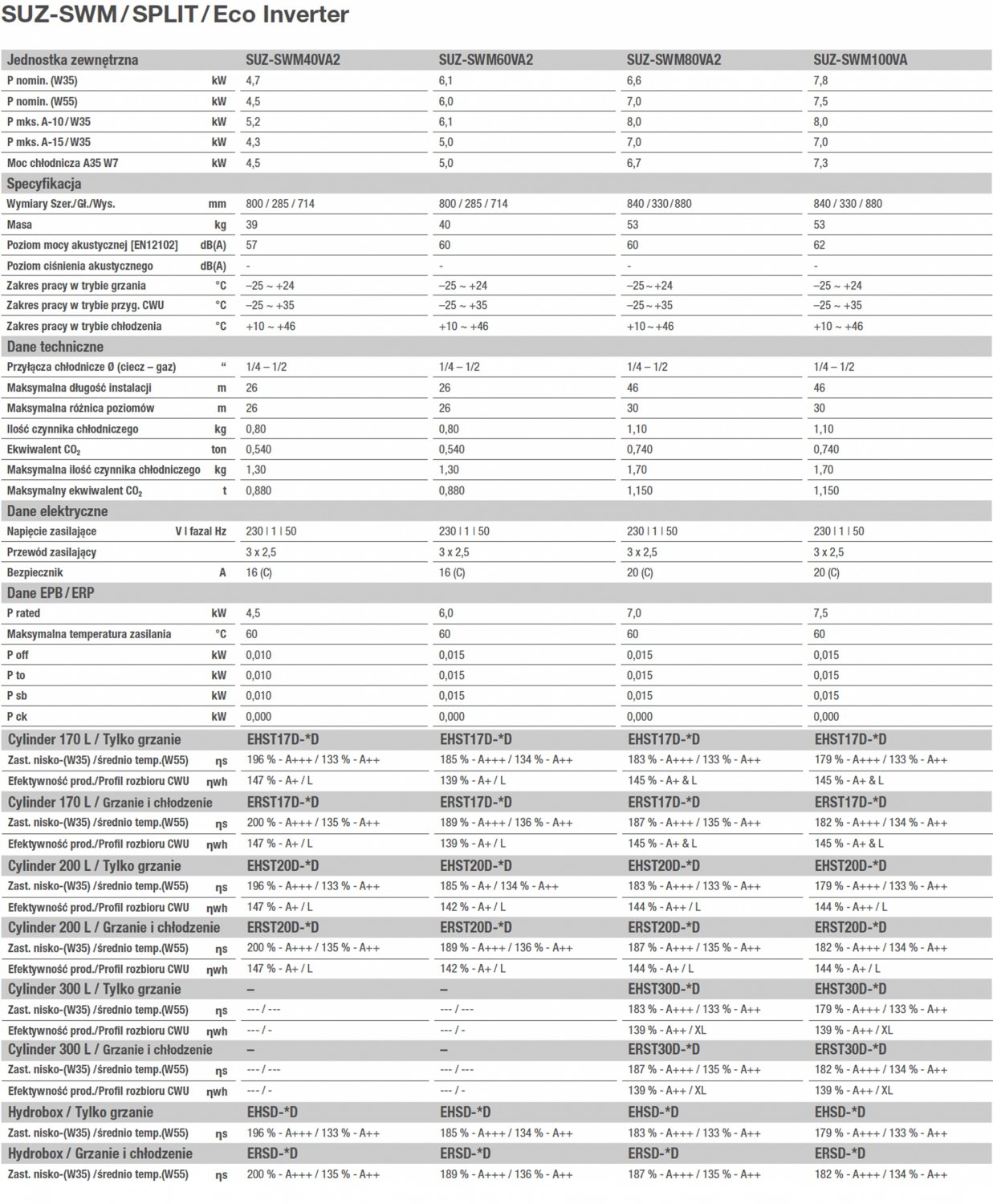 Pompa ciepła MITSUBISHI ECODAN Generacja D Eco Inverter Split SUZ-SWM Split + Hydroboks EHSD-D / ERSD-D