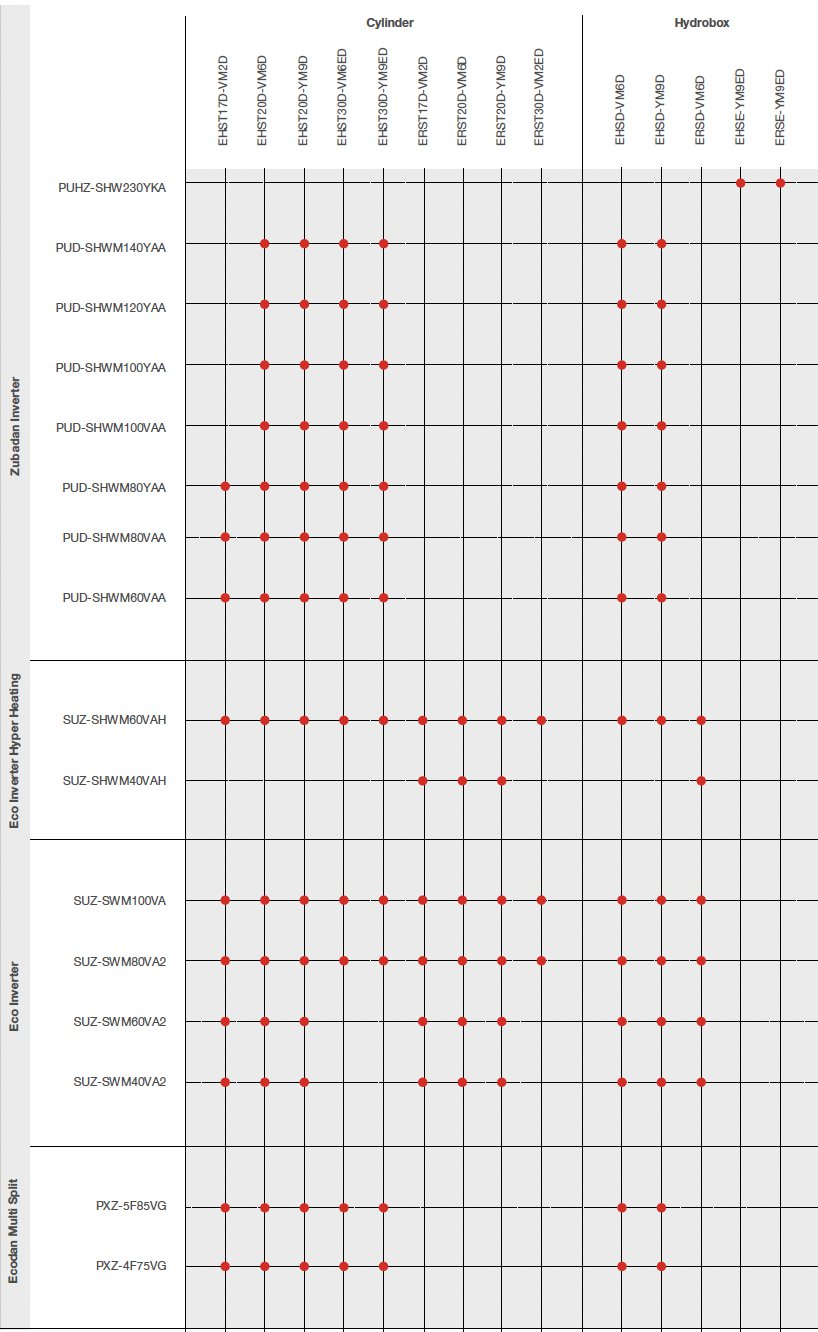 Trzy pompy ciepła, by optymalnie dopasować moc grzewczą do zapotrzebowania ciepła budynku - SUZ-SWM40VA, SUZ-SWM60VA oraz SUZ-SWM80VA.
