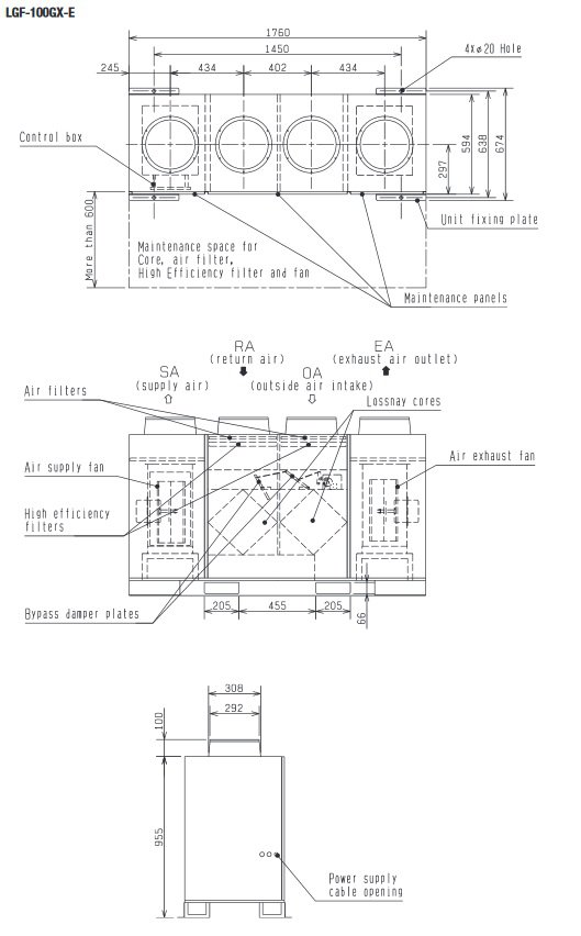 Urządzenie Lossnay LGF w wykonaniu spełniającym standardy higieniczne odznacza się specjalną konstrukcją obudowy i otrzymało, po przeprowadzeniu odpowiednich badań, certyfikat zgodności z wytycznymi VDI 6022. Oznacza to, że wszystkie elementy są wygodnie dostępne od frontu urządzenia, zatem można je z łatwością wyczyścić.