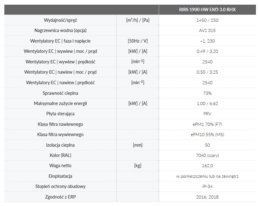 Centrale wentylacyjne RIRS 1900 H EKO 3.0 RHX wyposażone są w wydajny obrotowy wymiennik ciepła. Jednostki służą do wentylacji domów oraz innych ogrzewanych pomieszczeń.