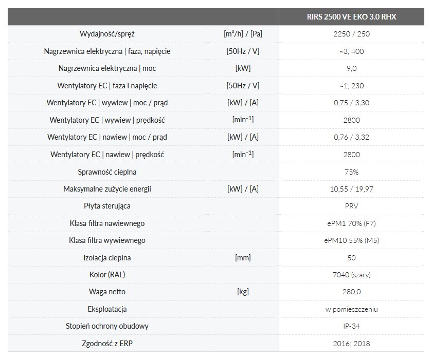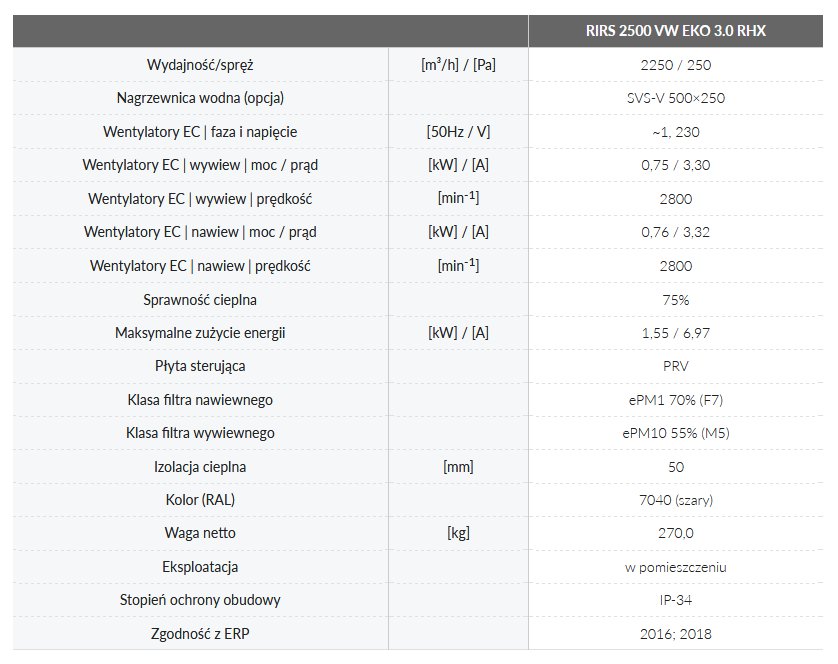 Centrale wentylacyjne RIRS 2500 V EKO 3.0 RHX wyposażone są w wydajny obrotowy wymiennik ciepła. Jednostki służą do wentylacji domów oraz innych ogrzewanych pomieszczeń.