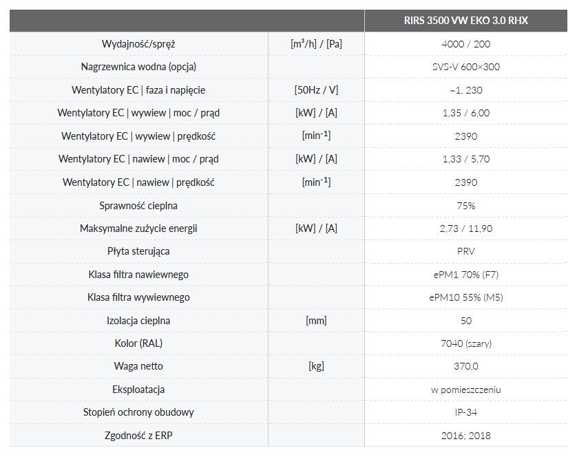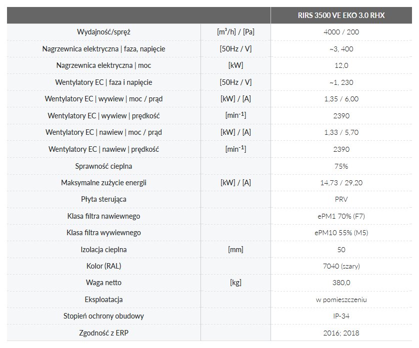Centrale wentylacyjne RIRS 3500 V EKO 3.0 RHX wyposażone są w wydajny obrotowy wymiennik ciepła. Jednostki służą do wentylacji domów oraz innych ogrzewanych pomieszczeń.
