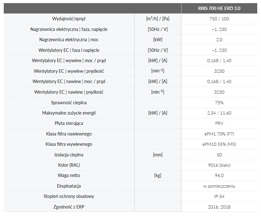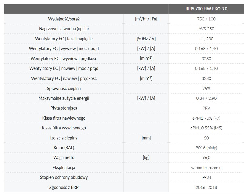 Centrale wentylacyjne RIRS 700 H EKO 3.0 wyposażone są w wydajny obrotowy wymiennik ciepła. Jednostki służą do wentylacji domów oraz innych ogrzewanych pomieszczeń.