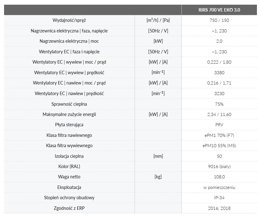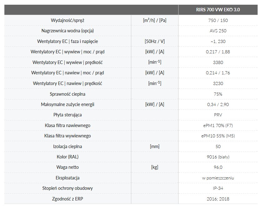 Centrale wentylacyjne RIRS 700 V EKO 3.0 wyposażone są w wydajny obrotowy wymiennik ciepła. Jednostki służą do wentylacji domów oraz innych ogrzewanych pomieszczeń.