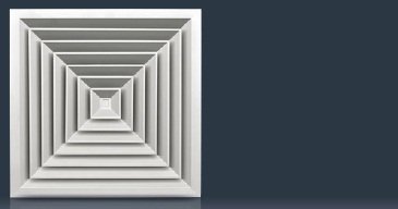 Anemostat sufitowy aluminiowy ASH4-AL kwadratowy do nawiewu lub wywiewu powietrza w instalacjach nisko i średnio-ciśnieniowych, w środowisku nieagresywnym o wilgotności względnej do 70%. Zalecany do nawiewu poziomego w pomieszczeniach o wysokości do ok. 4 m.