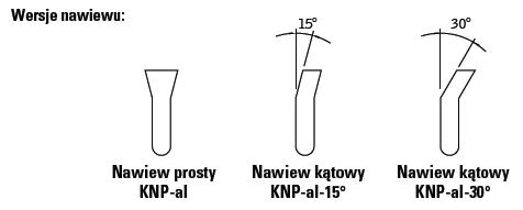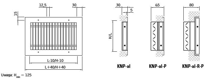 Ramka czołowa oraz kierownice wykonane z tłoczonych profili aluminiowych. Osadzenie kierownic poziome lub pionowe stałe. Odporna na znaczne obciążenia. Opcjonalne warianty wykonania – nawiew prosty KNP-al lub nawiew kątowy KNP-al-15° oraz KNP-al-30°. Możliwość zamówienia kratki w postaci demontowanego rusztu - osadzonego w bezkołnierzowej ramce R mocowanej na stałe w podłożu. W tej wersji kratka może być zamawiana w postaci taśmowej Maksymalna długość pojedynczego modułu – 2 mb.