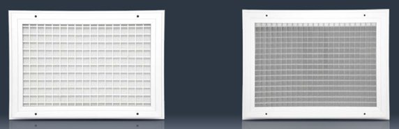 Za pomocą przepustnicy przeciwbieżnej typ P. Ustawianie przepływu powietrza odbywa się od czoła bez konieczności demontażu kratki.
