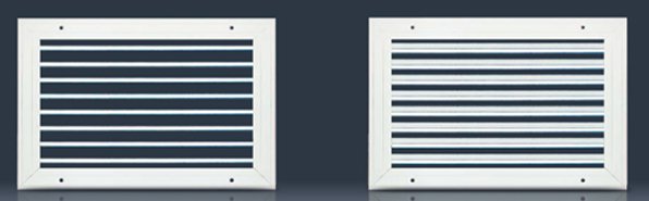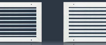 Za pomocą przepustnicy przeciwbieżnej typ P. Ustawianie przepływu powietrza odbywa się od czoła bez konieczności demontażu kratki. Możliwość zamówienia kratki z deflektorem D - drugi rząd pionowych kierownic zamocowanych na stałe lub obrotowo.