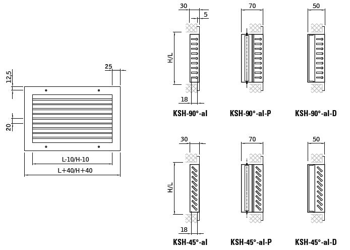 KSH-90-al, KSH-45-al - Kratka wentylacyjna aluminiowa ze stałymi kierownicami.