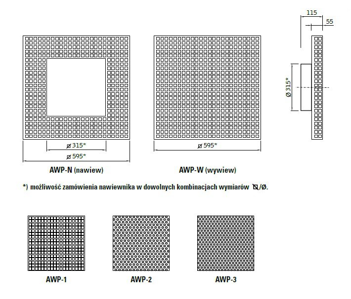 - panel czołowy wykonany z blachy perforowanej stalowej o powierzchni czynnej 50% - AWP-1 lub 30% - AWP-2