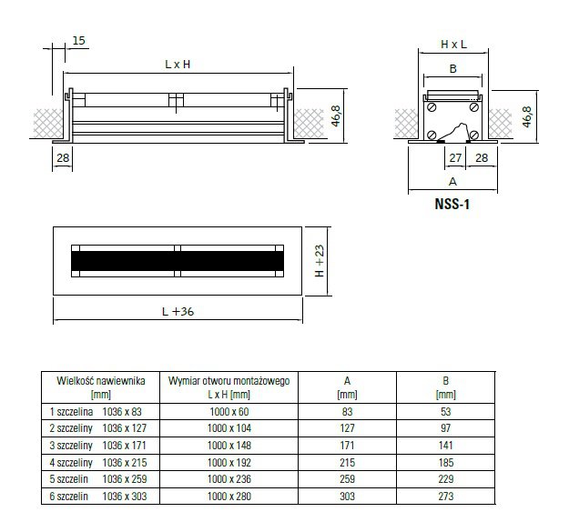 Nawiewnik szczelinowy NSS do nawiewu lub wywiewu powietrza w instalacjach nisko i średnio-ciśnieniowych. Stosowany również jako nawiewnik kurtynowy.