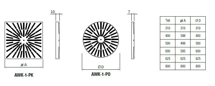 Nawiewnik wirowy kierunkowy AWK 1 do nawiewu w instalacjach nisko i średnio-ciśnieniowych, w środowisku nieagresywnym o wilgotności względnej do 70%.