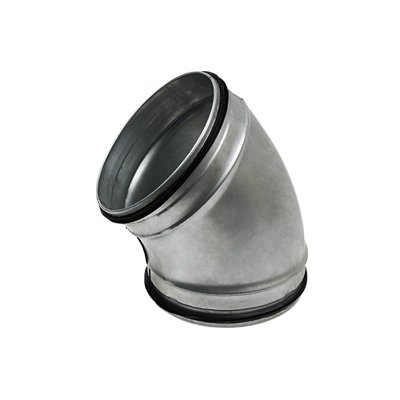 Kolano tłoczone BU60 z uszczelką EPDM z blach stalowych ocynkowanych produkowane jest w zakresie średnic od 80 mm do 250 mm.