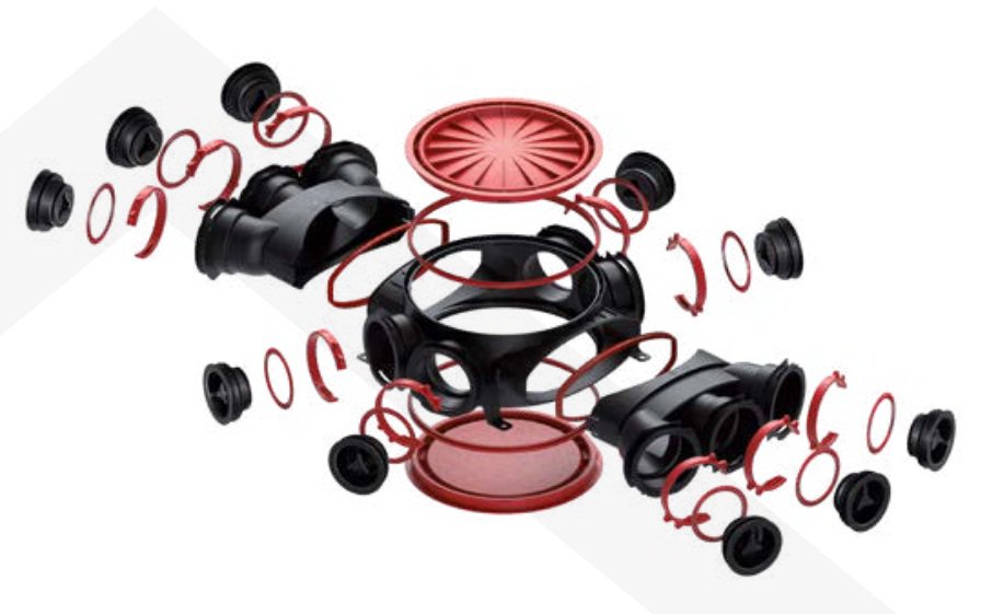 Skrzynka rozdzielcza umożliwią podłączenie do 10 rur 75 mm oraz podejścia głównego centralnego lub bocznego. W instalacji konieczne jest zastosowania dwóch zespołów skrzynek – do powietrza nawiewanego oraz do powietrza wywiewanego.