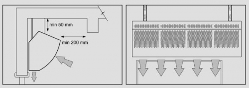 - należy zachować minimum 200mm przed pokrywą wlotową w celu prawidłowej pracy urządzenia.