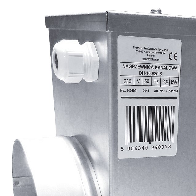 | TYP | Napięcie | Moc max | Ilość elementów grzewczych | Średnica kanału | Szerokość | Wysokość | Głębokość |