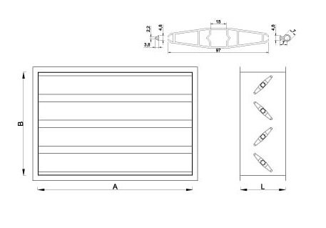 Przepustnica wentylacyjna wielopłaszczyznowa aluminiowa PW-AL115
