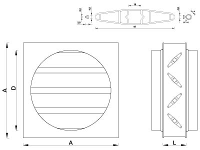 Przepustnice PWO wykonywane są na bazie przepustnic wielopłaszczyznowych PW-ALL115. Kwadratowa przepustnica wyposażona jest w króćce okrągłe dostosowane do podłączenia z instalacją przewodów okrągłych.