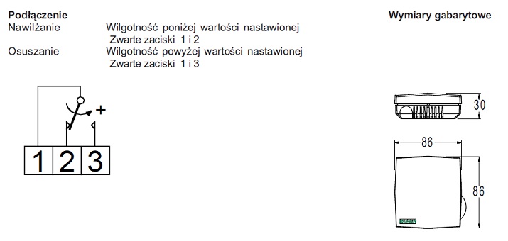 klimatyzacji i ogrzewania. Może być wykorzystywany do sygnalizacji przekroczenia ustalonego progu wilgotności.