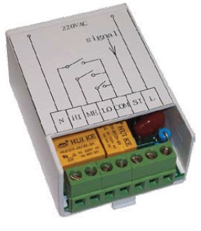 - „LO” - wyjście biegu 1. Wyjście to jest zwierane do wyprowadzenia wspólnego, gdy sterownik chce włączyć 1 bieg centrali.